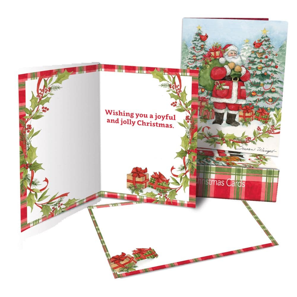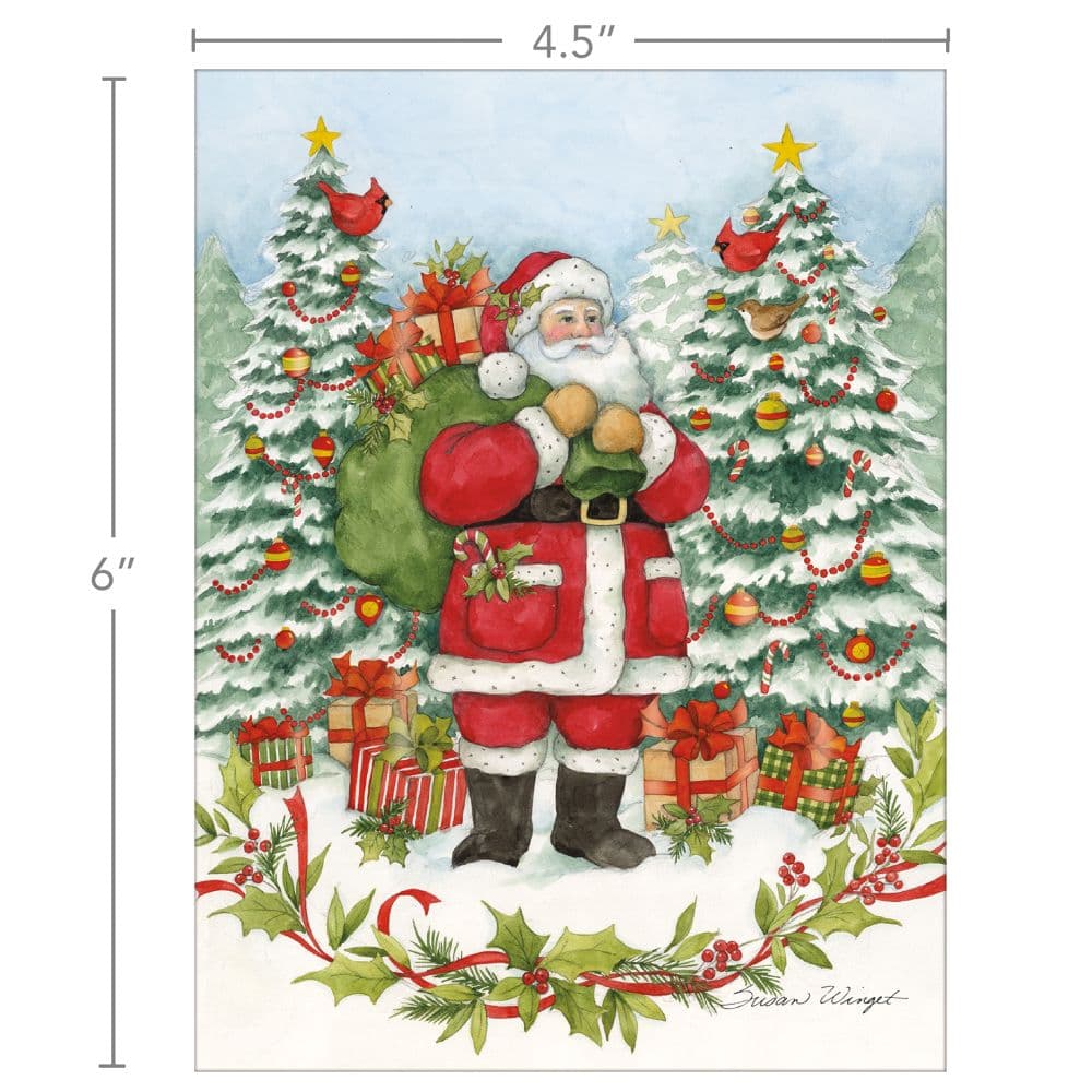 The Christmas Deliveries Classic Christmas Cards by LANG are an elegant way to send season's greetings to your loved ones. Featuring artwork by Susan Winget of a woodland scene with Santa delivering gifts, you'll get 12 linen embossed cards with full-color artwork inside and out, and 13 matching envelopes! Plus, the new acetate-free packaging doubles as a keepsake box, keeping your cards nice and safe all year long!
