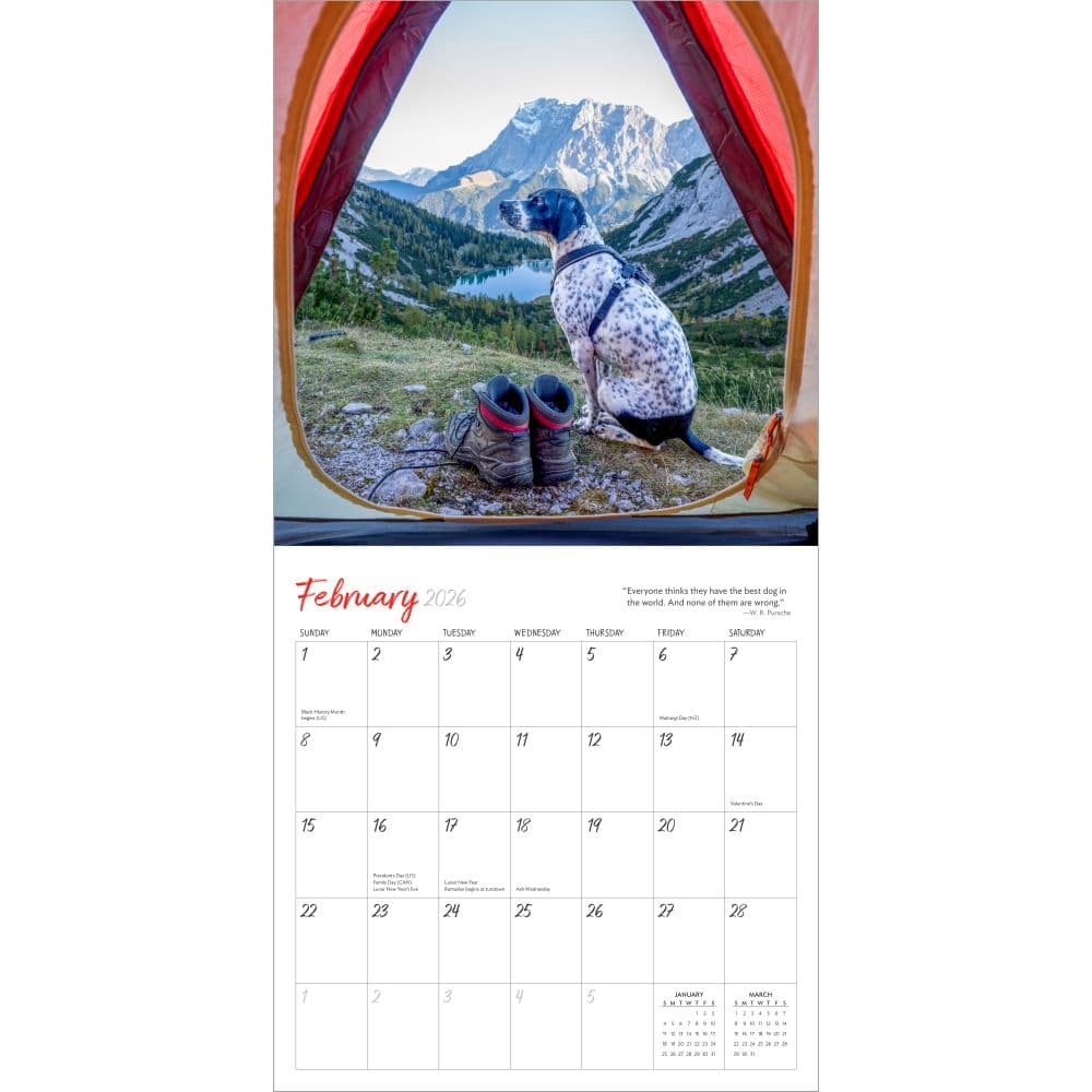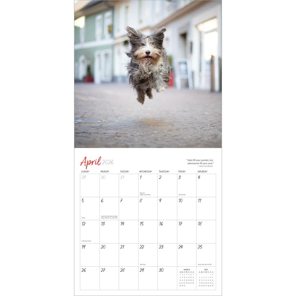 - Each month showcases a different charming dog enjoying a vacation, with large grid spaces for daily planning and notes