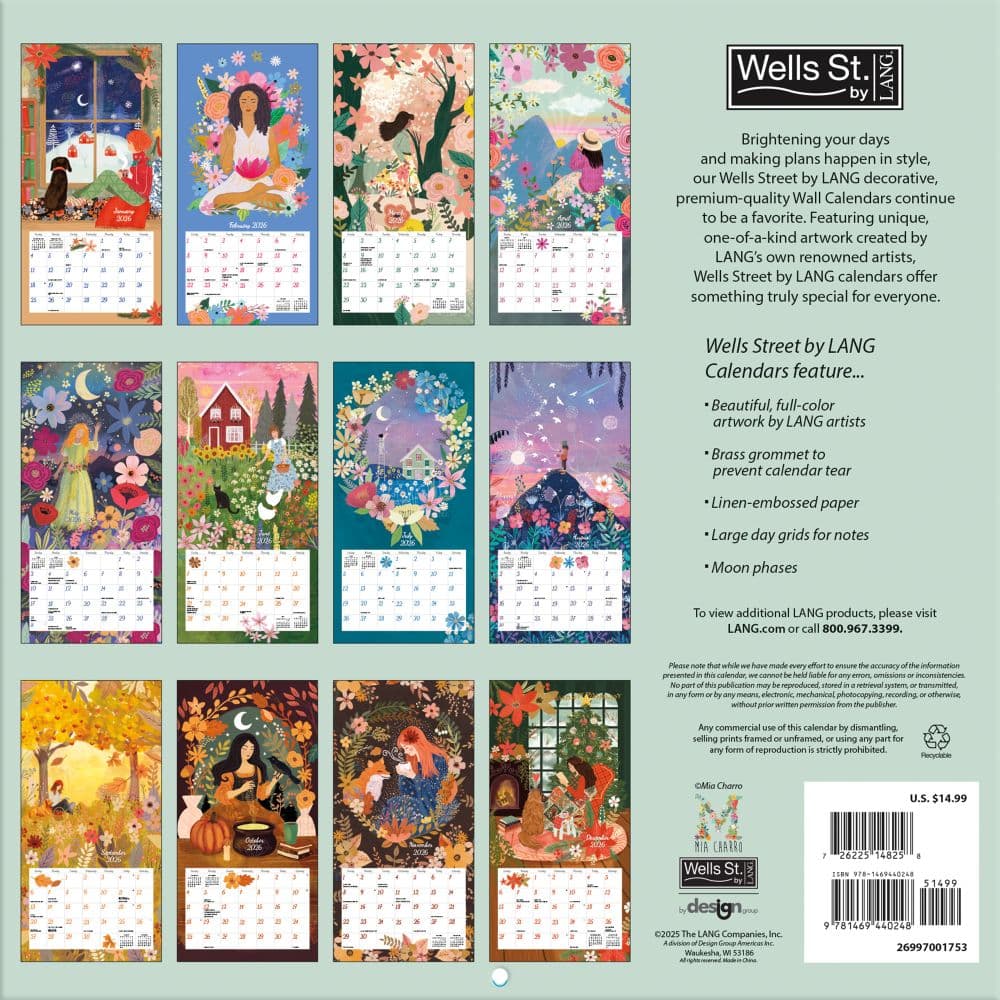 The Dream, Wander, Discover 2026 Wall Calendar features monthly artwork by Mia Charro of ethereal women surrounded by the seasonal magic of both flora and fauna. Wells St. by LANG Wall Calendars feature monthly full color images based on hand-painted originals, elegant linen-embossed paper stock, and a brass grommet for hanging.
