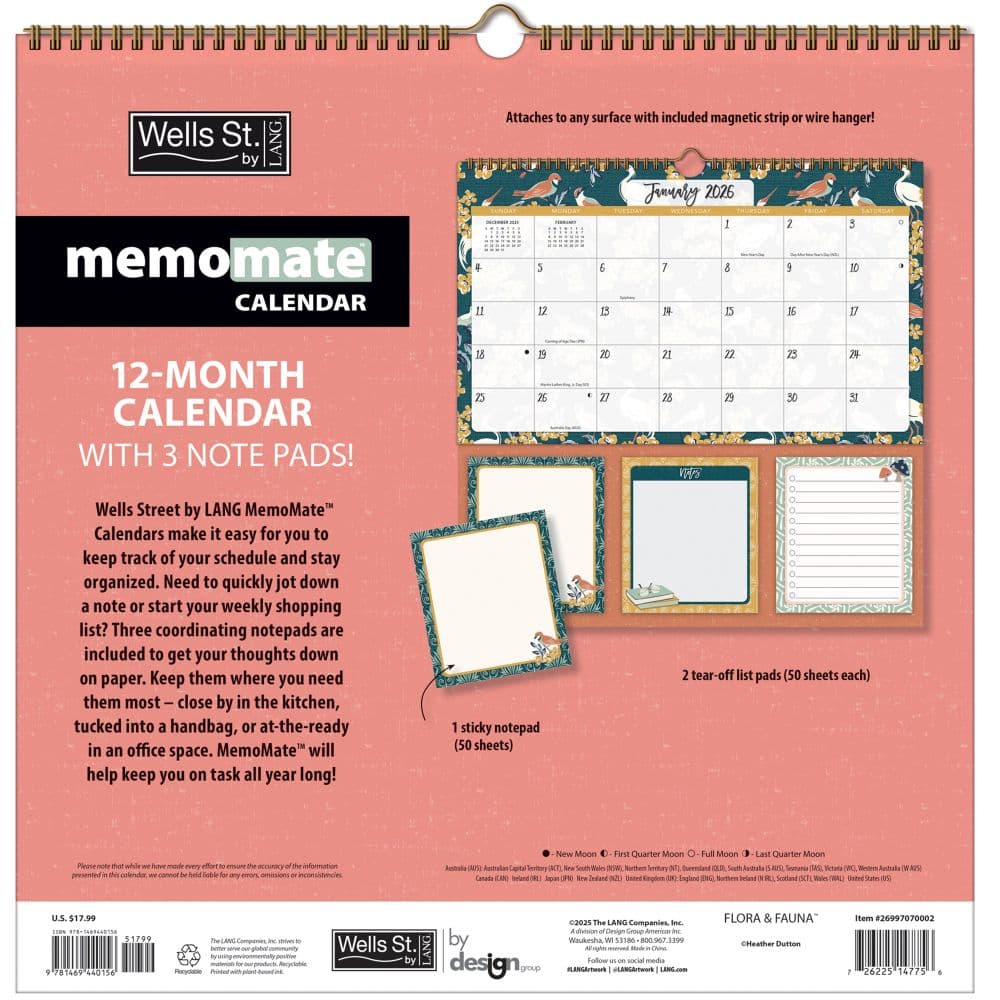 Start your year off right with a blend of beauty and functionality. Order your Flora and Fauna MemoMate 2026 Spiral Calendar by Heather Dutton today and transform how you track your days!