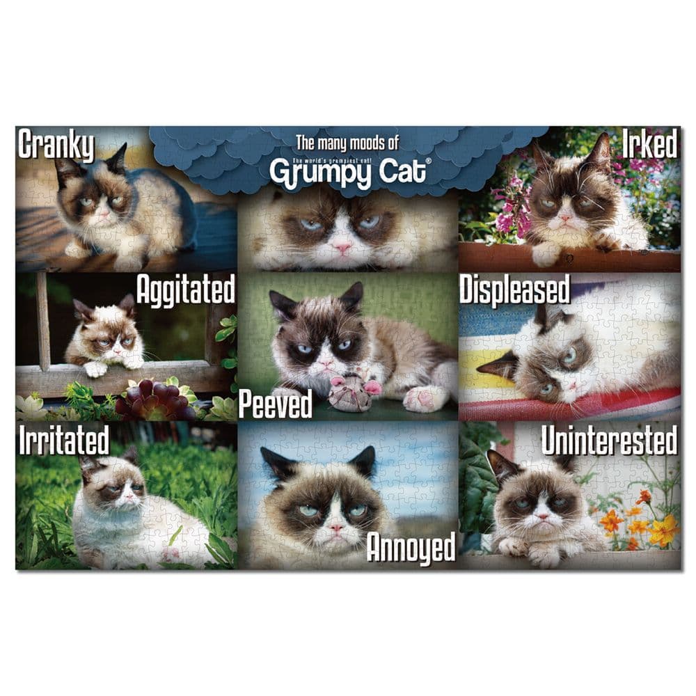 I?ntroducing the Grumpy Cat 1000 Piece Puzzle ? the ultimate challenge for puzzle enthusiasts and fans of the world's grumpiest feline! Dive into a collage of funny photos featuring Tardar Sauce, affectionately known as Grumpy Cat, and experience hours of entertainment while piecing together her iconic expressions of disdain. Each piece connects you closer to the hilariously unamused world of Grumpy Cat, making this puzzle as amusing as it is engaging.