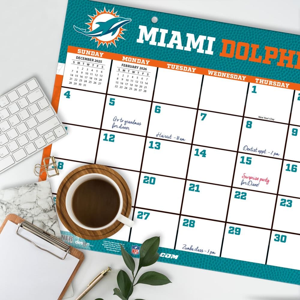Get ready for the year ahead with the Miami Dolphins! Perfect for planning and showing off your team pride. Order now and enjoy a year of Dolphins spirit!