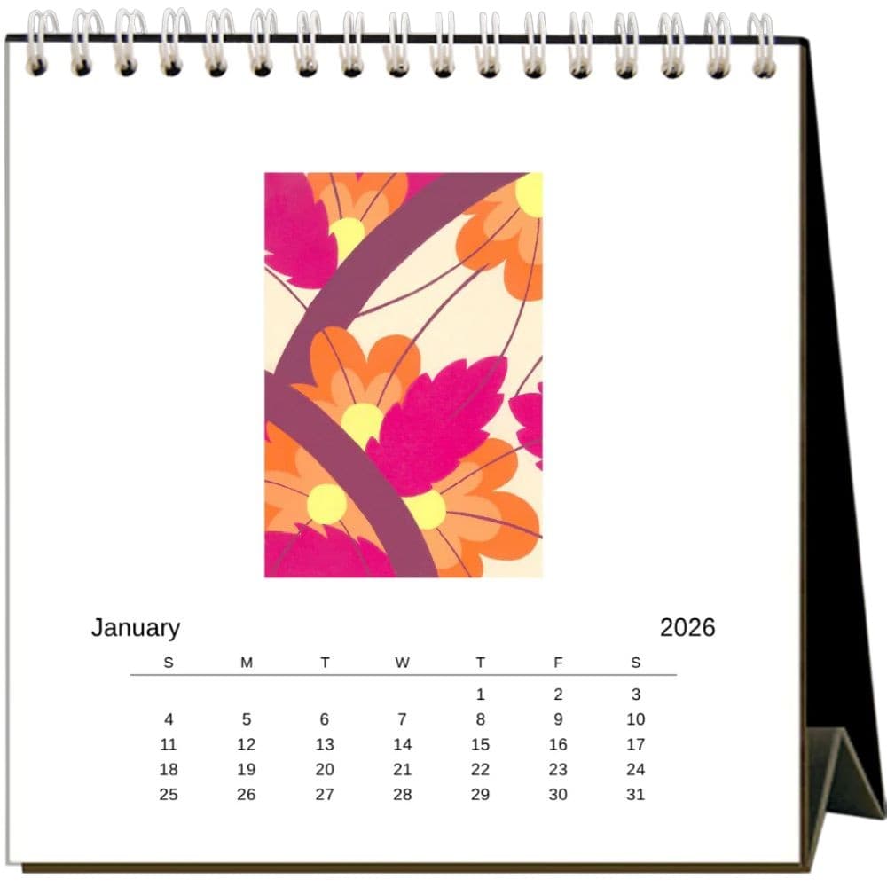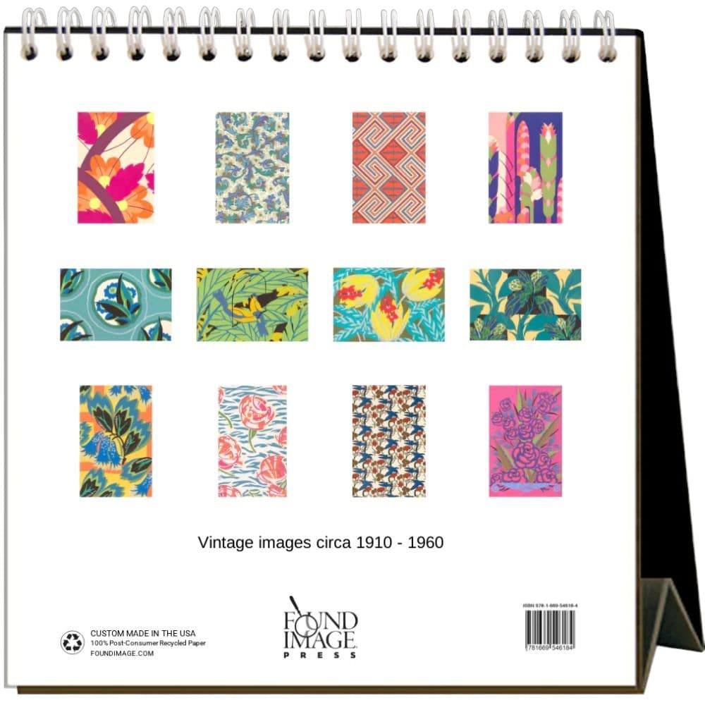 This easel desk calendar, with its colorful repeating Patterns, speaks to our inner need for beauty and order. It features 12 vintage geometric and floral patterned images from the 1910s to the 1960s and is printed on 100% post-consumer recycled, acid-free, natural white, heavy cardstock. 6" x 7" x 3" when expanded, it's made in the USA.