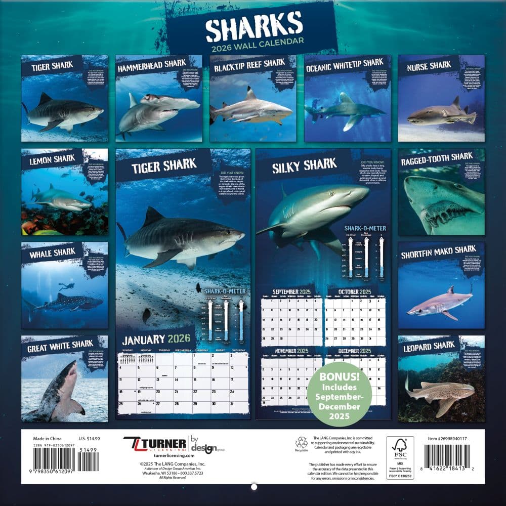 Sharks Photo 2026 Wall Calendar