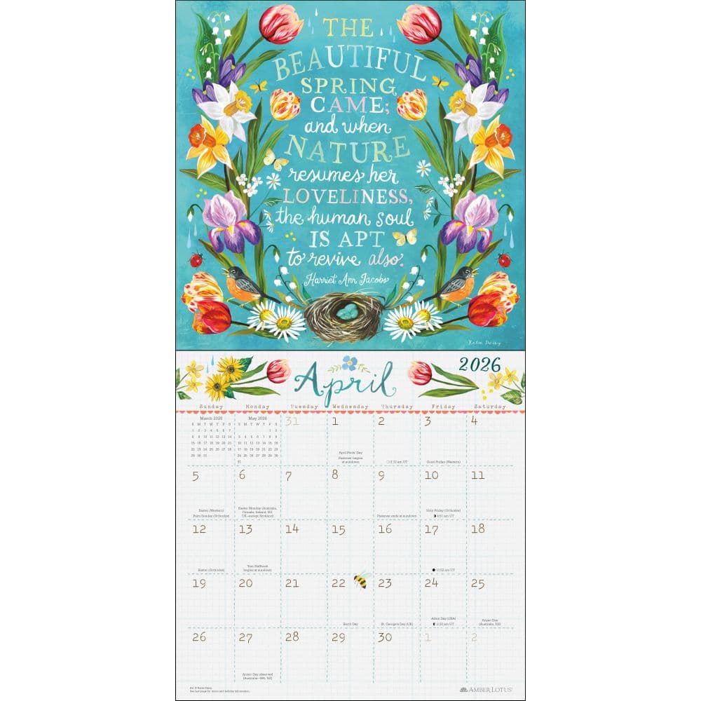• Each month showcases unique, full-color artwork of blossoms and wildlife, paired with inspirational quotes