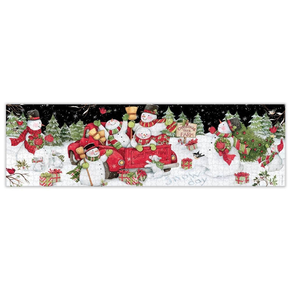LANG jigsaw puzzles are a fun, yet challenging activity to do with friends and family. Assemble the Snow Day 750 Piece Puzzle to form a painting by Susan Winget a playful winter scene featuring snowmen. All pieces, finished with elegant linen embossed paper, securely lock in place and come in a resealable plastic bag. An art print guide is also included to help you solve this challenging puzzle!